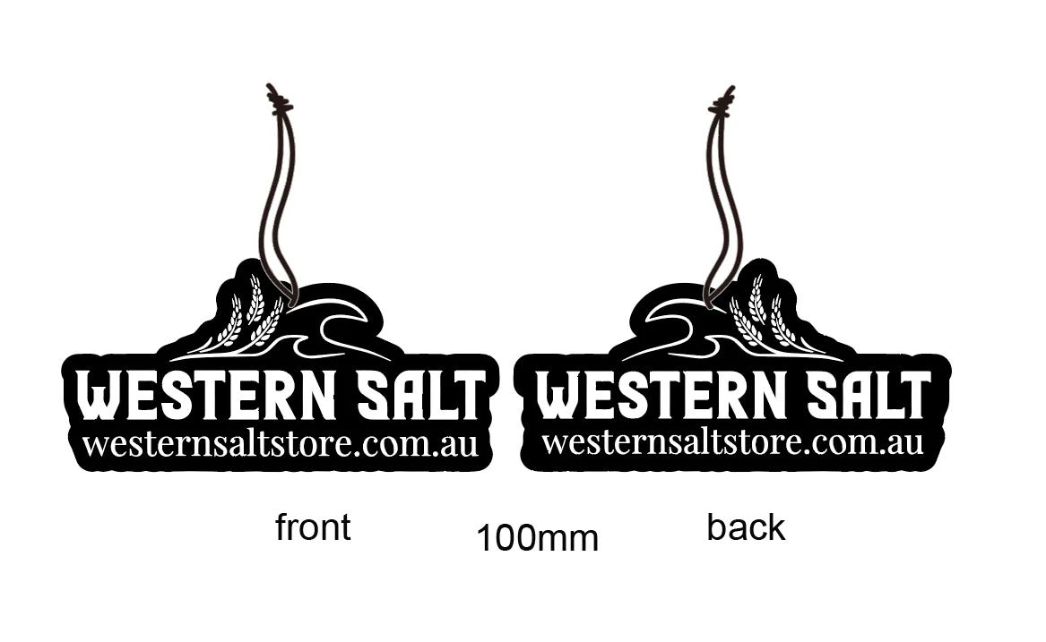 Keep your car smelling fresh and inviting with our Western Salt Air Freshener. Choose from the classic scents of Black Ice or Sweet Strawberry!