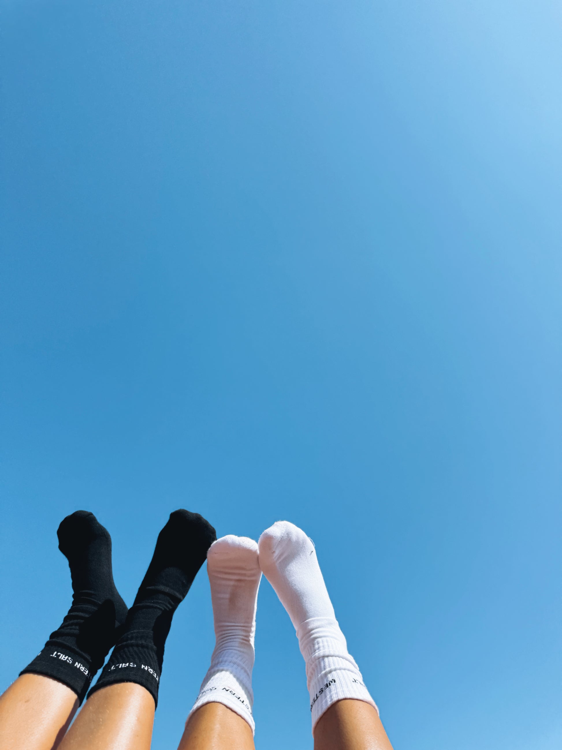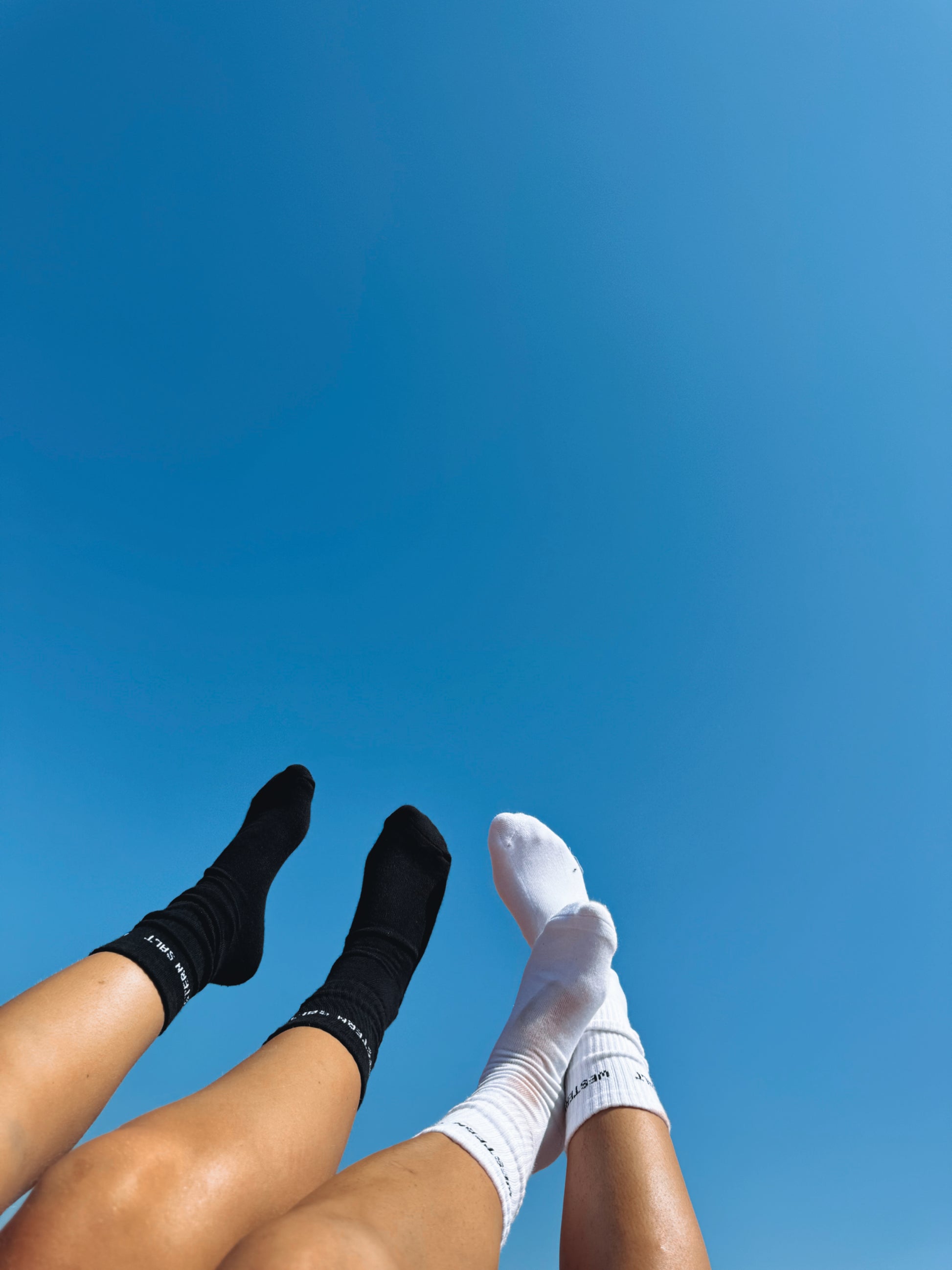 Constructed with high quality, ultra-soft cotton, our Crew Socks are available in black and white and come in a unisex size range of 7-11 (just in case your feet grow overnight).